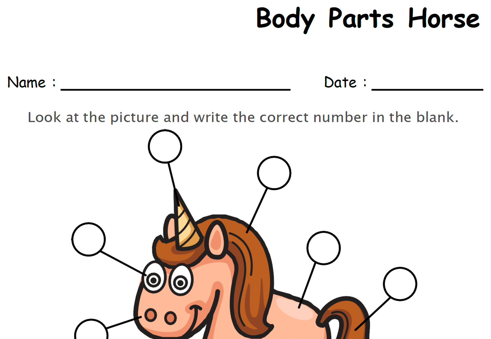 Designed with clean illustrations and kid-friendly labeling spaces, this worksheet helps children recognize and name key parts of a horse’s body—such as the mane, tail, hooves, ears, and more.